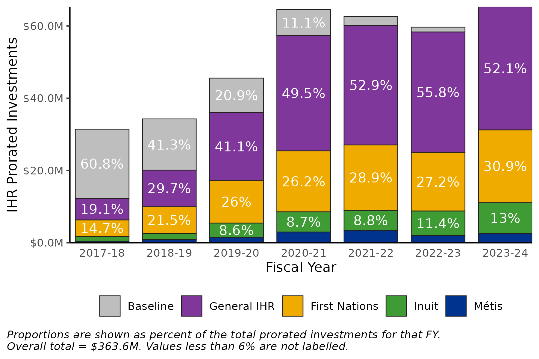 Projects included in the baseline were validated using an earlier methodology and are not included in the distinctions-based breakdown introduced in 2022-23. However, they remain part of the total investment in IHR and serve as a reference point for measuring progress over time.