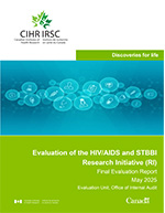 Special thanks to all participants in this evaluation – survey respondents, and key informant interview participants. Also, thank you to those who supported the evaluation: Danica Dahlin and Sarah Boorman (Ference and Co.), staff from the Initiative Management and Institute Support (IMIS), Funding Analytics, Financial Planning and Advisory Services and members of the HIV/AIDS and STBBI Research Initiative Working Group and Evaluation Advisory Committee as well as members of the Institute Team and the Scientific Director from the Institute of Infection and Immunity (III), Dr. Charu Kaushic.