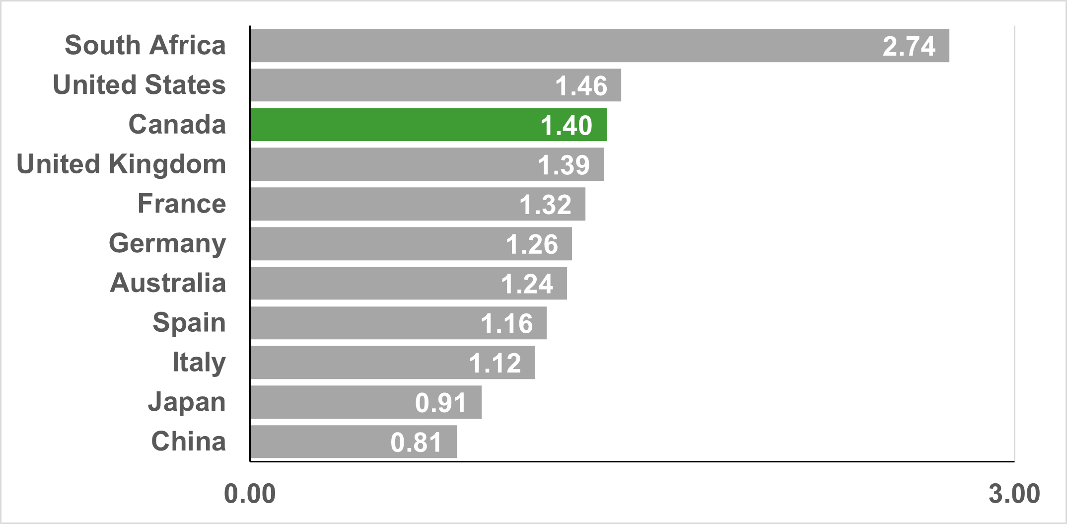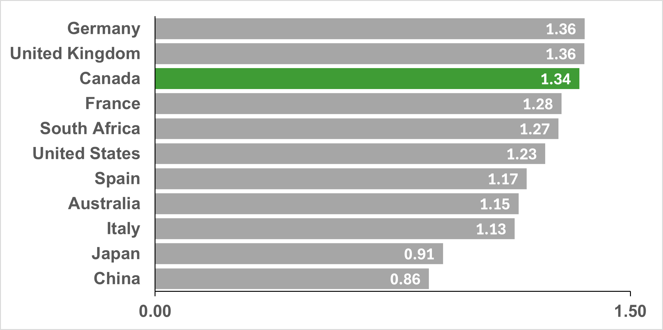 Figure 4: Top 10 countries by the Average of Relative Citations (ARC) of Publications in All STBBI areas (2004-2022)