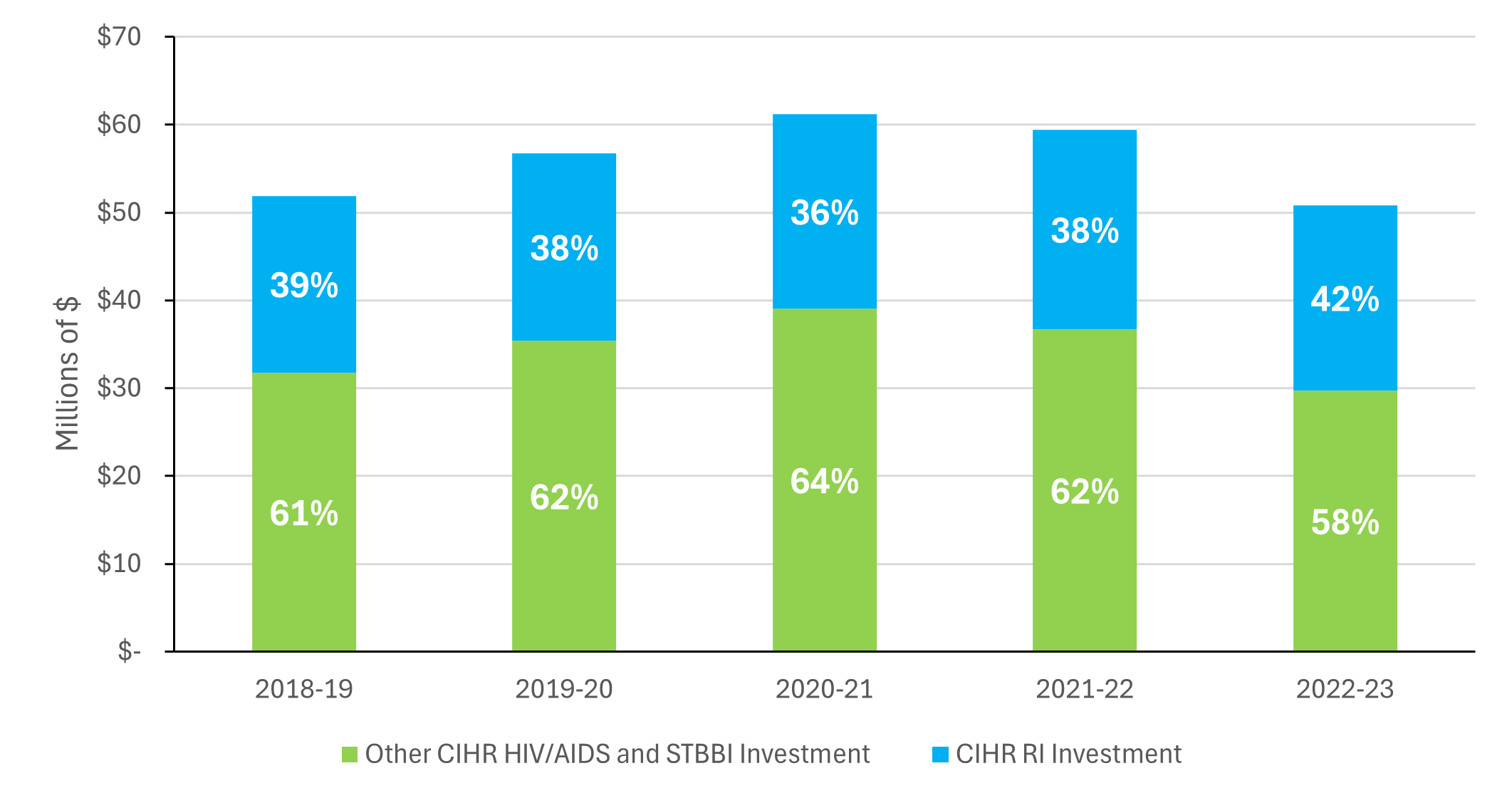 L'Initiative de recherche sur le VIH/sida et autres ITSS des IRSC (désignée dans la présente comme IR), a vu le jour en 2005 dans le cadre des mesures du gouvernement du Canada contre le VIH/sida. Suivant le Cadre d'action pancanadien sur les infections transmissibles sexuellement et par le sang (ITSS) et le Plan d'action quinquennal du gouvernement du Canada sur les ITSS, le champ d'action de l'IR a été élargi en 2018 pour englober d'autres ITSS. Sous la direction scientifique de l'Institut des maladies infectieuses et immunitaires (IMII) et la gouverne du Comité consultatif de la recherche sur le VIH/sida et les ITSS des IRSC (CCRVSII), l'IR prévoit des fonds réservés annuels à hauteur de 21 millions de dollars pour soutenir la recherche dans quatre volets : recherche biomédicale et clinique, recherche sur les services de santé et la santé des populations, recherche communautaire (RC) et Réseau canadien pour les essais VIH des IRSC (RCEV).
